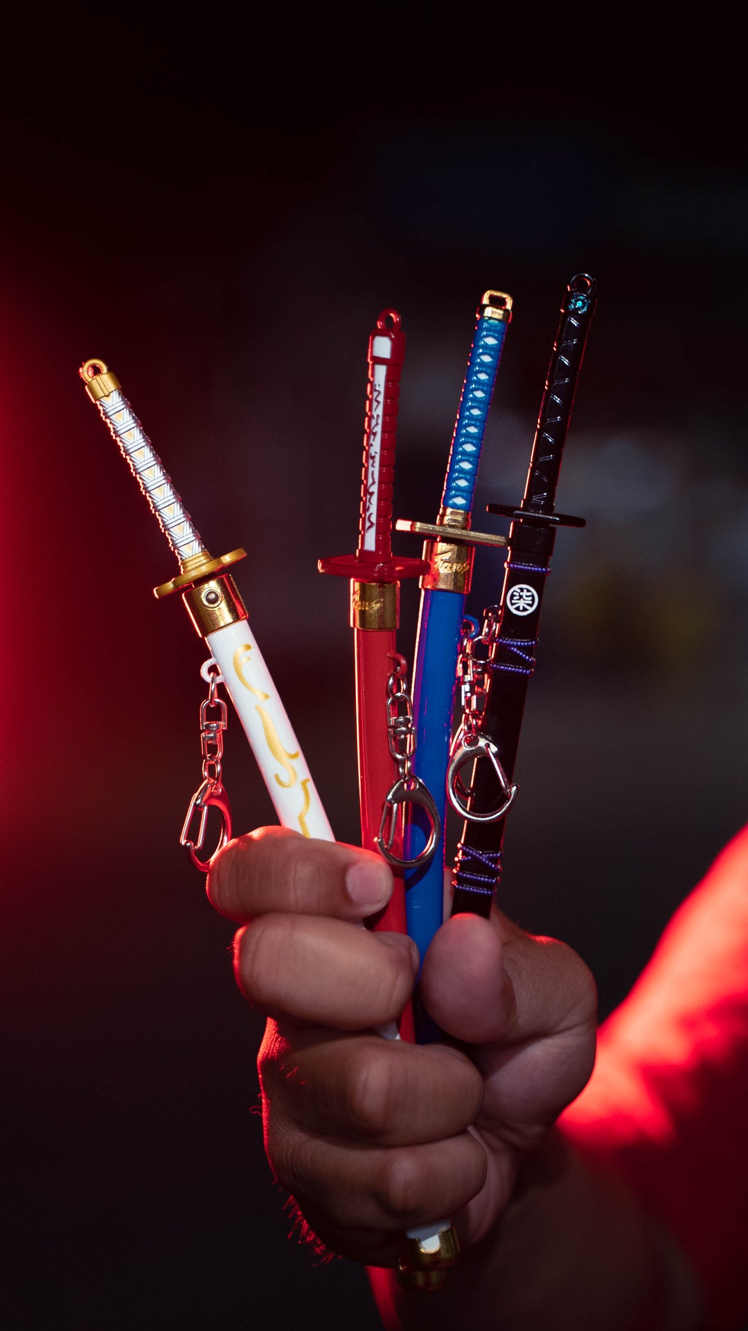 These are actual Katana Kult members in awe of our treasured crafts! Legendary sword designs reworked, itty-bitty style!